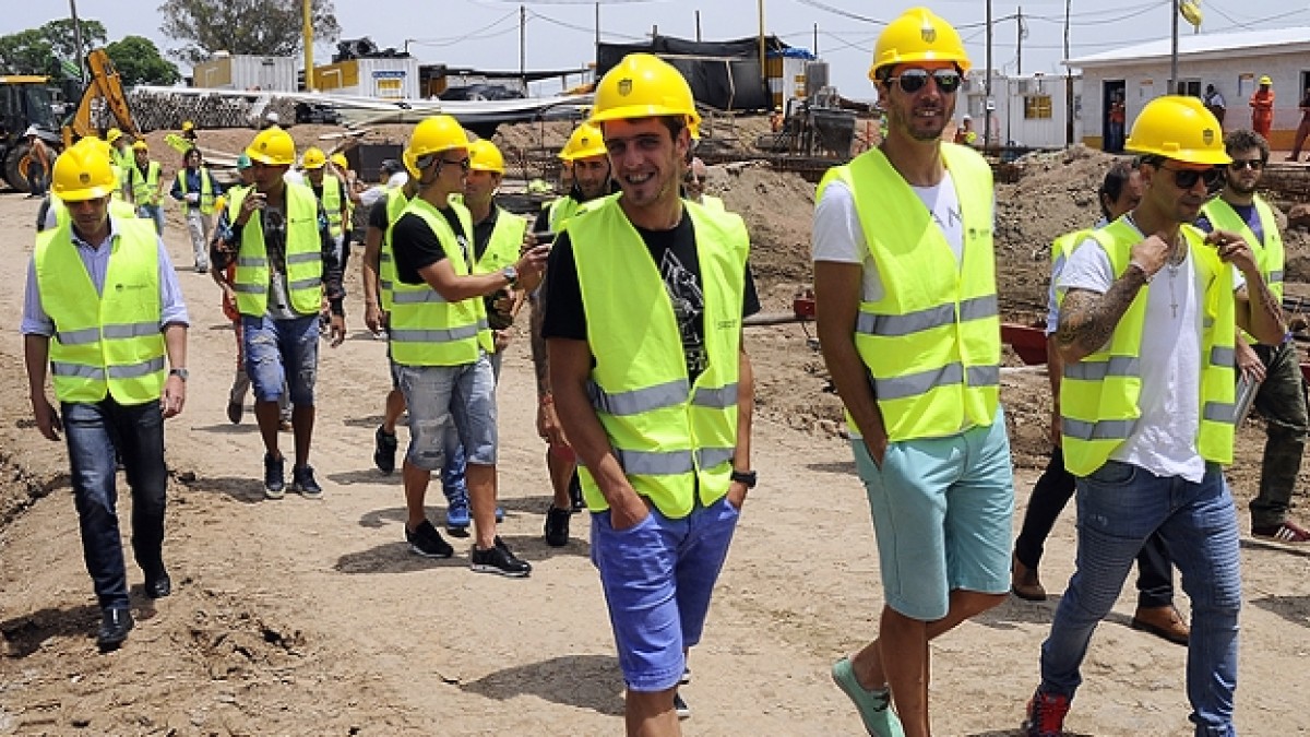 El plantel aurinegro visitó las obras de construcción del nuevo Estadio de Peñarol; guiados por el Vicepresidente de Saceem Ing. Alejandro Ruibal y el jefe de obra, el Ing. Nestor Sclavi, los jugadores, el cuerpo técnico y funcionarios del Club visitaron cada rincón del predio.
