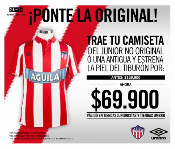 ¡Ponte la original! se llama la original campaña de Junior de Barranquilla en la que invita a los fanáticos a llevar sus camisetas no originales o antiguas y cambiarlas por “La piel del Tiburón” diseñada por Umbro Colombia.