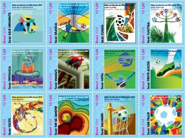 Belo Horizonte, Brasilia, Cuiabá, Curitiba, Fortaleza, Manaos, Natal, Porto Alegre, Recife, Río de Janeiro, Salvador y San Pablo serán, desde el 12 de junio hasta el 13 de julio de este año, el foco de todas las miradas. Las doce sedes de la Copa del Mundo Brasil 2014 fueron homenajeadas por correo de ese país con diferentes estampillas basadas en las ilustraciones oficiales de cada ciudad.