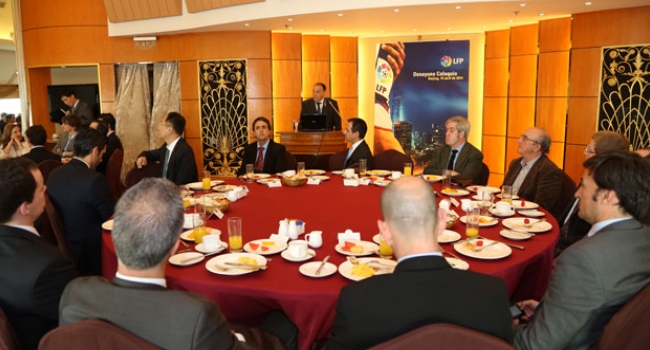 Javier Tebas, presidente de la LFP, Manuel Valencia, embajador español en China, y Xu Jing, presidente de la Asociación Internacional China del MOFCOM, firmaron un acuerdo de colaboración mutua. El objetivo principal del mismo es la expansión e internacionalización de la liga española de fútbol en el país asiático.