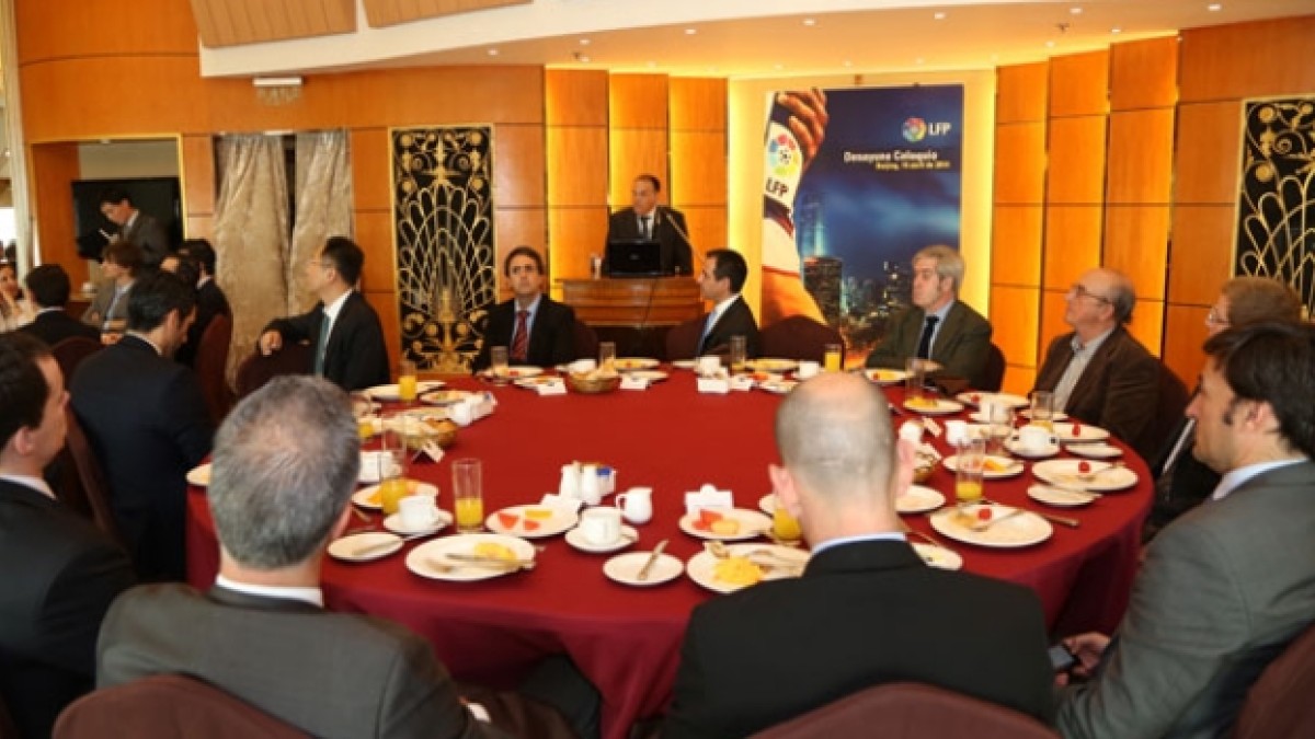 Javier Tebas, presidente de la LFP, Manuel Valencia, embajador español en China, y Xu Jing, presidente de la Asociación Internacional China del MOFCOM, firmaron un acuerdo de colaboración mutua. El objetivo principal del mismo es la expansión e internacionalización de la liga española de fútbol en el país asiático.