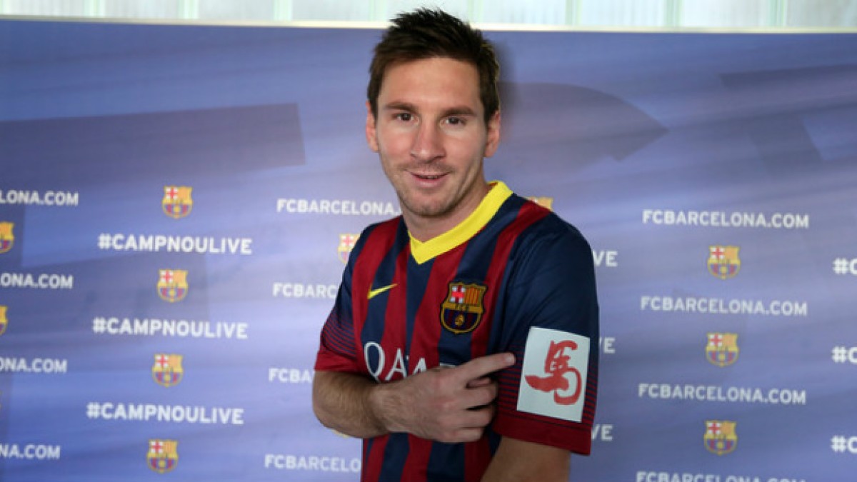 Lionel Messi presenta la camiseta especial del Barcelona por el año nuevo chino