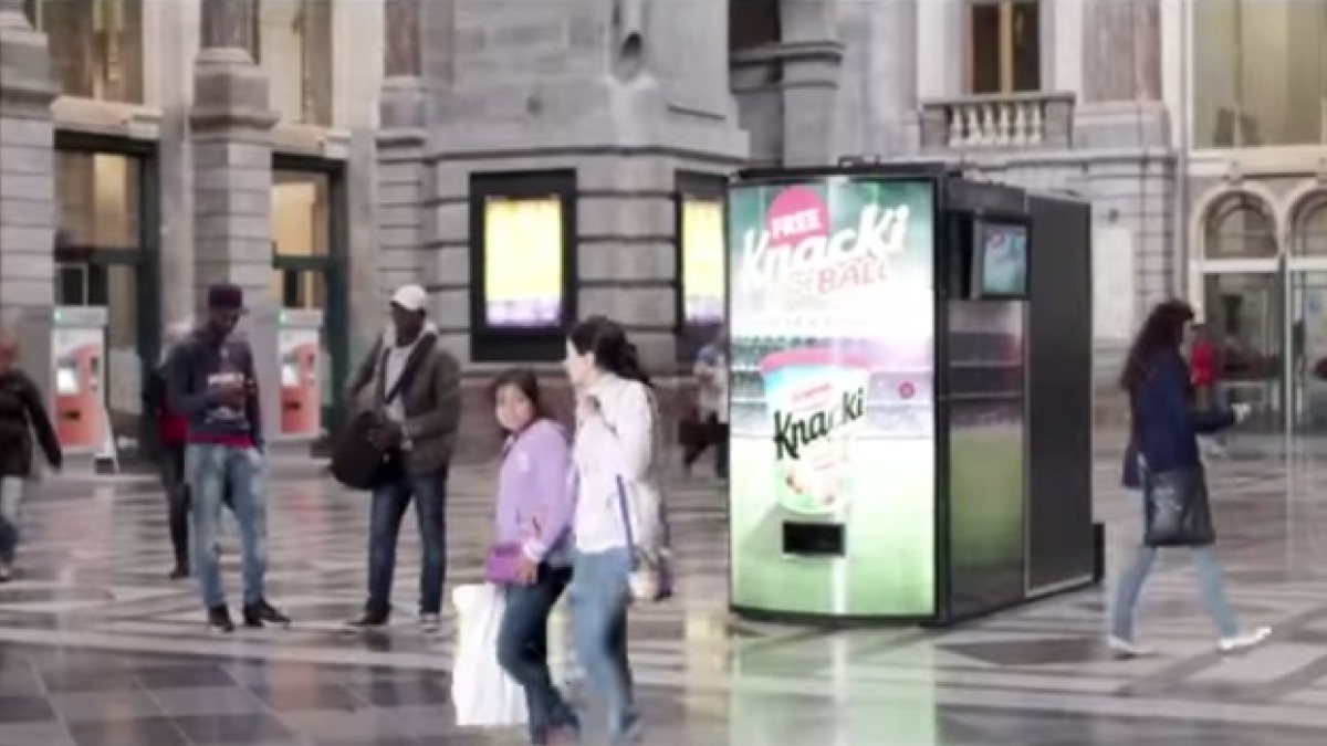 El centro de Amberes, Bélgica, se revolucionó con la nueva campaña de la empresa alimenticia Knacki, la cual dispuso una máquina expendedora en plena calle con un llamativo desafío. Adentro de la máquina, que tras abrirse su puerta se convertía en una mini cancha de fútbol, estaba Leo Van der Elst, ex jugador de la Selección de Bélgica.