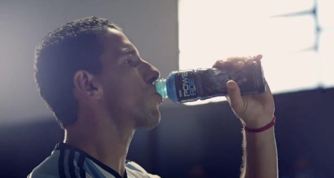 En este comercial, Maxi Rodríguez, que disputa su tercera Copa del Mundo, promociona los nuevos envases coleccionables de Powerade, con distintos diseños alusivos a la Albiceleste.
