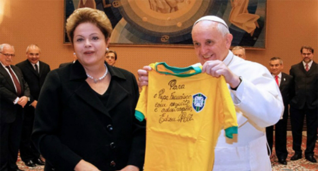 Rousseff invitó al Papa a asistir al Mundial, pero este dijo que no podría concurrir, revelaron los editores deportivos el martes, tras reunirse con la presidenta la noche anterior.