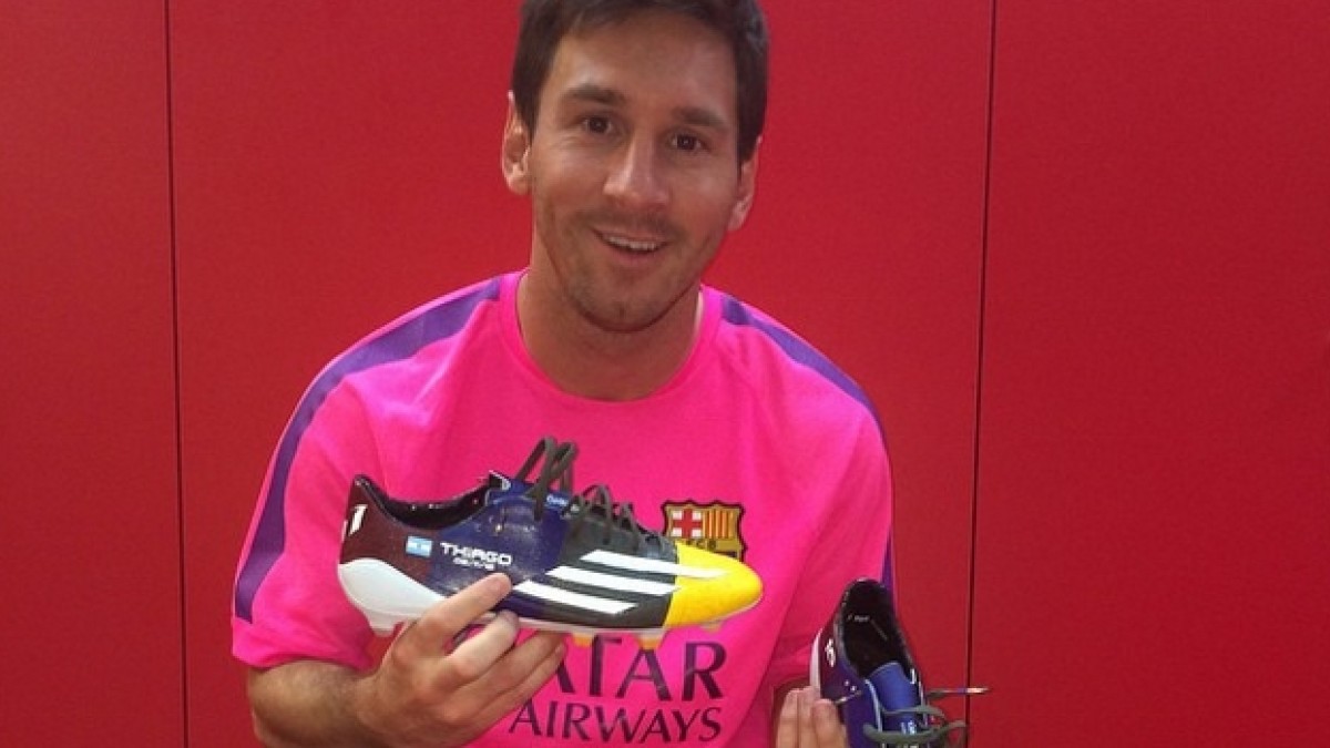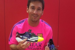 Messi tiene sus nuevos adidas F50 para la Champions League