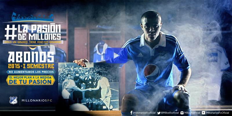 La próxima temporada del fútbol colombiano ya comenzó a vivirse en algunos clubes, que lanzaron sus nuevos paquetes de abonos apuntando a los hinchas que no quieran perderse ni un sólo encuentro del club de sus amores. Tal es el caso de Millonario de Bogotá, quien presentó la campaña #LaPasiónDeMillones, con un gran video en YouTube, donde invita a sus hinchas a comprar los abonos para el 2015.
