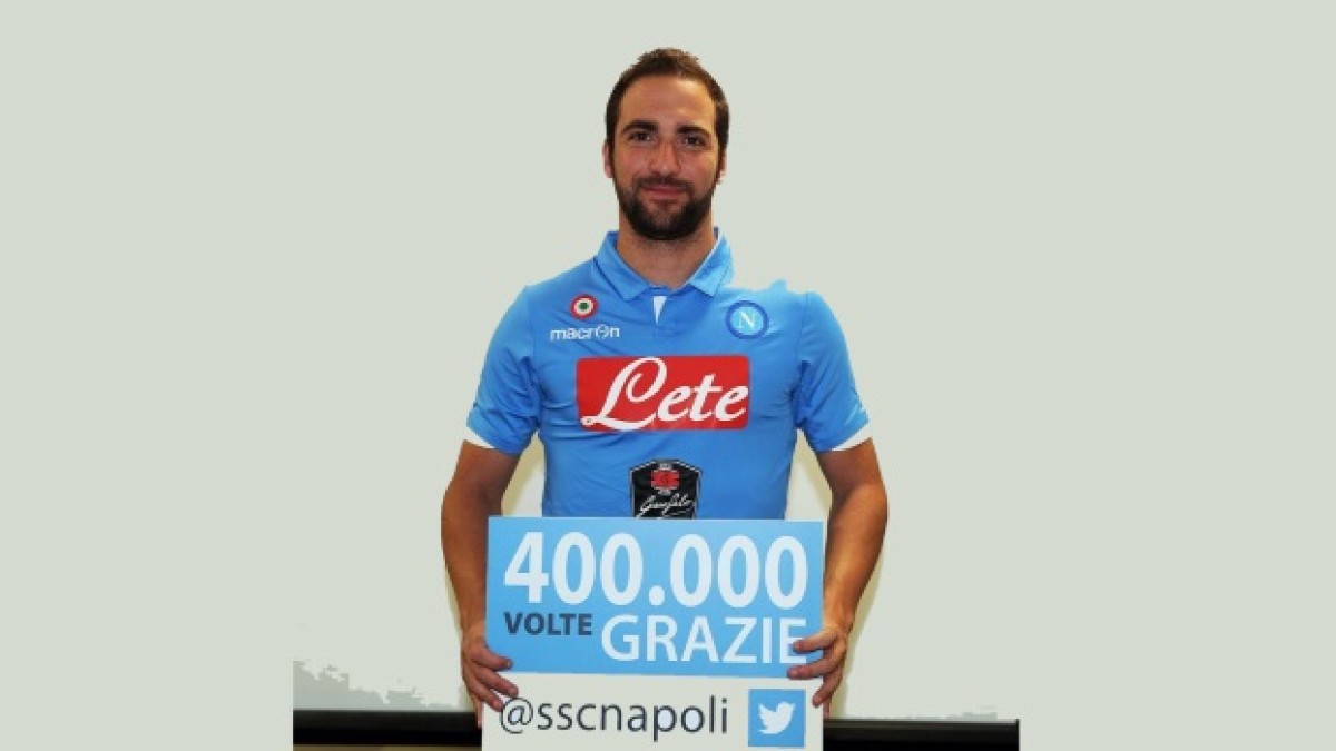 A través de diferentes fotos, el Napoli agradeció a sus fanáticos haber alcanzado la suma de 400 mil seguidores en su cuenta oficial de Twitter. Un cartel de agradecimiento a los Tifossi fue fotografiado en las tribunas del San Paolo, en la cancha de entrenamiento y sostenido por algunos jugadores, entre ellos Gonzalo Higuaín.
