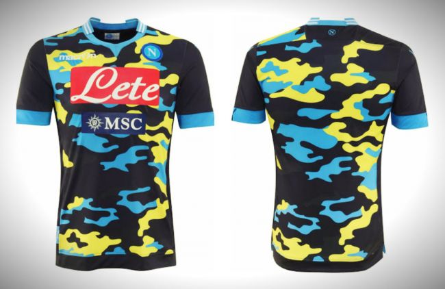 Siguiendo los pasos del modelo presentado a mediados de 2013, el Napoli y su patrocinador de indumentaria, Macron, dieron a conocer la nueva camiseta con diseño camuflado. A diferencia de la anterior, esta presenta una mayor variedad de colores con gran presencia del tradicional celeste del club. Esto, lo aleja un poco de los tintes bélicos que causaron revuelo hace algunos meses.