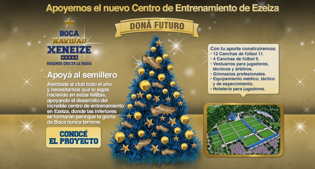 Actualmente, la dirigencia de Boca Juniors lleva adelante el pretencioso proyecto del Centro de Entrenamiento propio del club en Ezeiza, muy cercano al de la AFA y River Plate. Sin embargo, para que el sueño sea realidad el Xeneize pide la colaboración de sus socios, hinchas y fanáticos en todo el mundo a través del sitio www.navidadxeneize.com.ar.