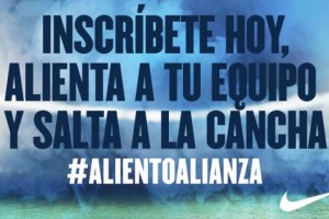 Utilizando el hashtag #AlientoAlianza, Nike lanzó una campaña en la que los hinchas de Alianza Lima de Perú deberán apoyar a su equipo tanto en Facebook como en Twitter. El ranking puede ser seguido en vivo y en directo en la página oficial de Facebook del equipo Blanquiazul.
