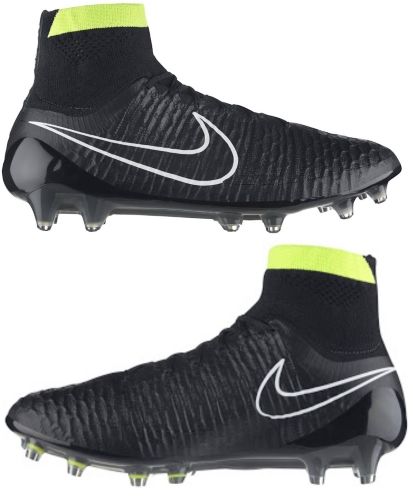 Uno de los nuevos modelos de los Nike Magista combina la base negra, con un degradado de amarillo a naranja flúor. El otro modelo es mayormente negro con detalles en amarillo flúor. De acuerdo con lo informado por Nike, los Magista ofrecen un mejor control del balón y tracción 360º.