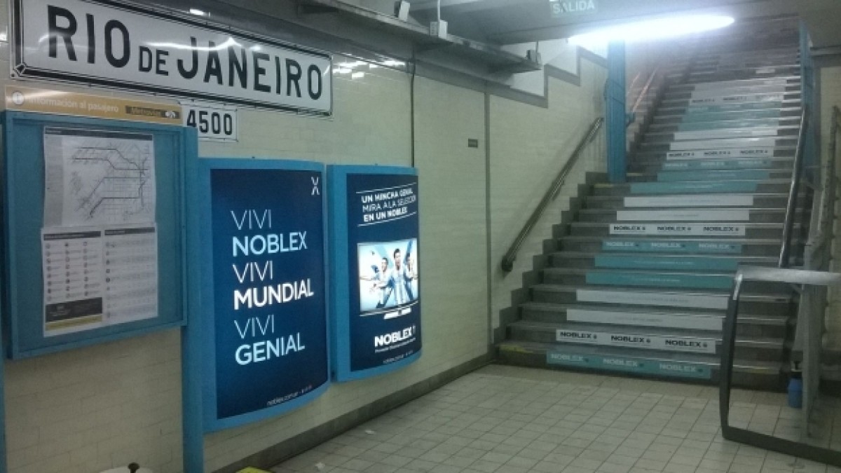 Así, la estación de Subte “Río de Janeiro” se vistió de celeste y blanco de una forma muy particular: desde las paredes, molinetes y dispositivos backlight, hasta las escaleras, pisos y cartelería, todo con la estética “mundialista” de Noblex. A su vez, el espacio cuenta con algunos escenarios diseñados especialmente para que la gente interactúe con ellos, de manera de acercarlos y hacerlos parte de la acción.
