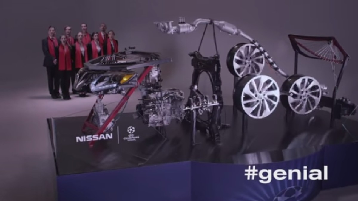 Una orquesta de partes de auto toca el himno de la Champions League para Nissan