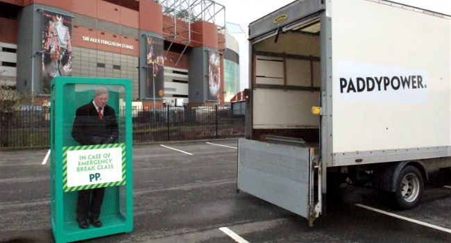 Aprovechando esta situación, y poniéndole un poco de humor, la casa de apuestas Paddy Power, se acercó al Old Trafford luego de que el United pierda 3-1 con el Chelsea, y dejó un pequeño regalo.