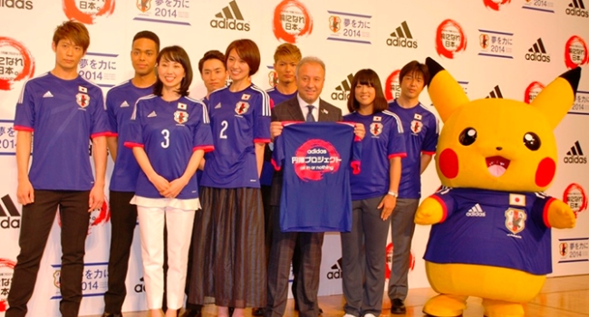 En el lanzamiento del acuerdo estuvo presente Pikachu, vistiendo la camiseta titular del seleccionado japonés diseñada por adidas. Además, otros personajes de la serie animada acompañarán al equipo en tierras brasileras. Japón integrará el Grupo C junto a Costa de Marfil, Grecia y Colombia.