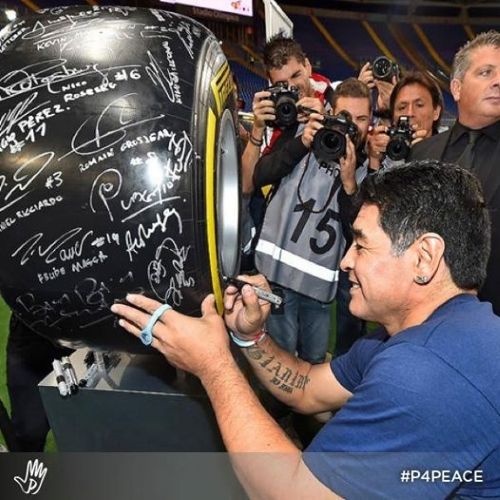 Luego del Partido por la Paz organizado por el Papa Francisco junto a la Fundación PUPI y Scholas Ocurrentes, Pirelli hizo autografiar un neumático por los jugadores allí presentes y lo subasta en e-bay. Diego Armando Maradona, Ezequiel Lavezzi, Andrea Pirlo, Andriy Shevchenko, Alessandro Del Piero, Luigi Buffon, Ivan Zamorano, Samuel Eto'o y Javier Zanetti son algunos de los ex futbolistas que estamparon su firma.