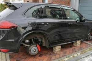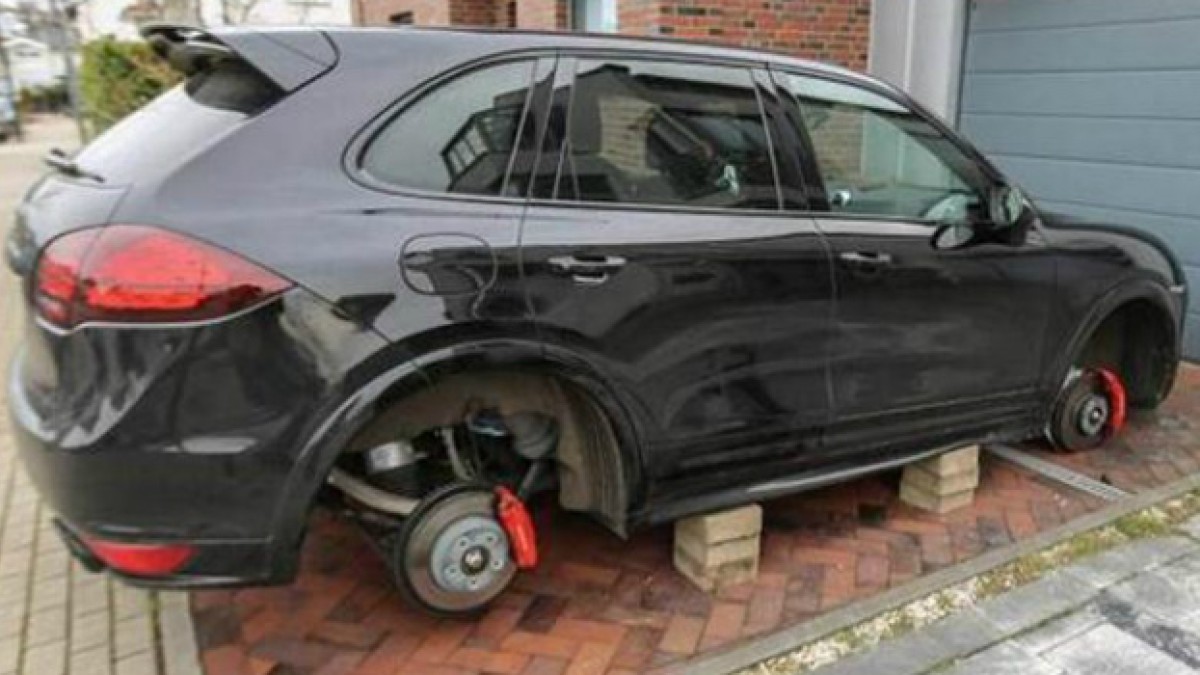 Bueno, por lo menos tuvieron la “gentileza” de dejarle el auto sobre ladrillos.