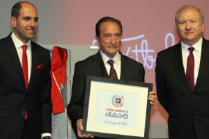 El presidente de la Federación de Fútbol de Chile, Sergio Jadue, participó del lanzamiento de la Copa América Chile 2015, evento en el que dieron a conocer la imagen oficial del torneo.