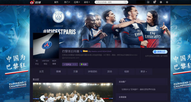 Con un total de 2.004.326 seguidores exactamente, el París Saint-Germain es el primer club francés, y también figura entre los diez primeros de Europa, tan solo 15 meses después de su primer tuit en una red social china.