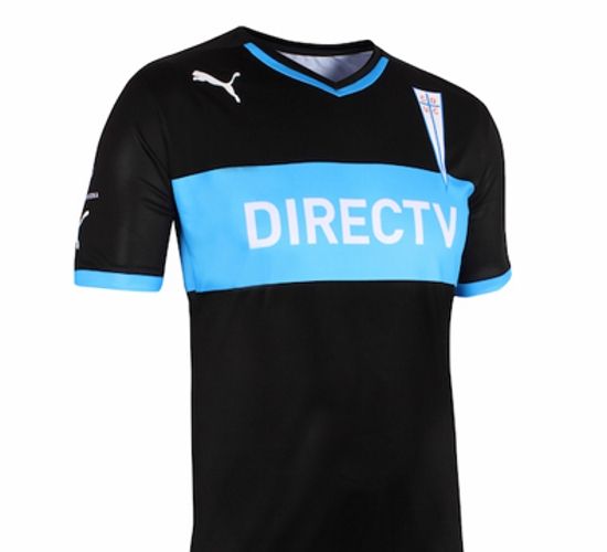 La camiseta negra con franja celeste, se complementa con el short del mismo color de la franja y medias negras, colores inéditos que desde ahora el cuadro dirigido por Julio César Falcioni usará en Copa Chile, Copa Sudamericana y la Copa Euroamericana, organizada por DIRECTV.