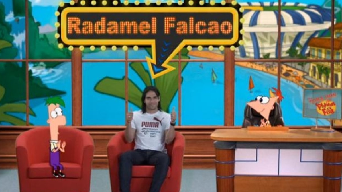 Sin embargo, Falcao se hizo unos minutos para participar del segmento Toma Dos, del programa infantil Phineas y Ferb que se emite por Disney Channel. El Tigre se sometió a un divertido cuestionario por el que anteriormente había pasado, por ejemplo, su compatriota y exfutbolista Carlos Valderrama.