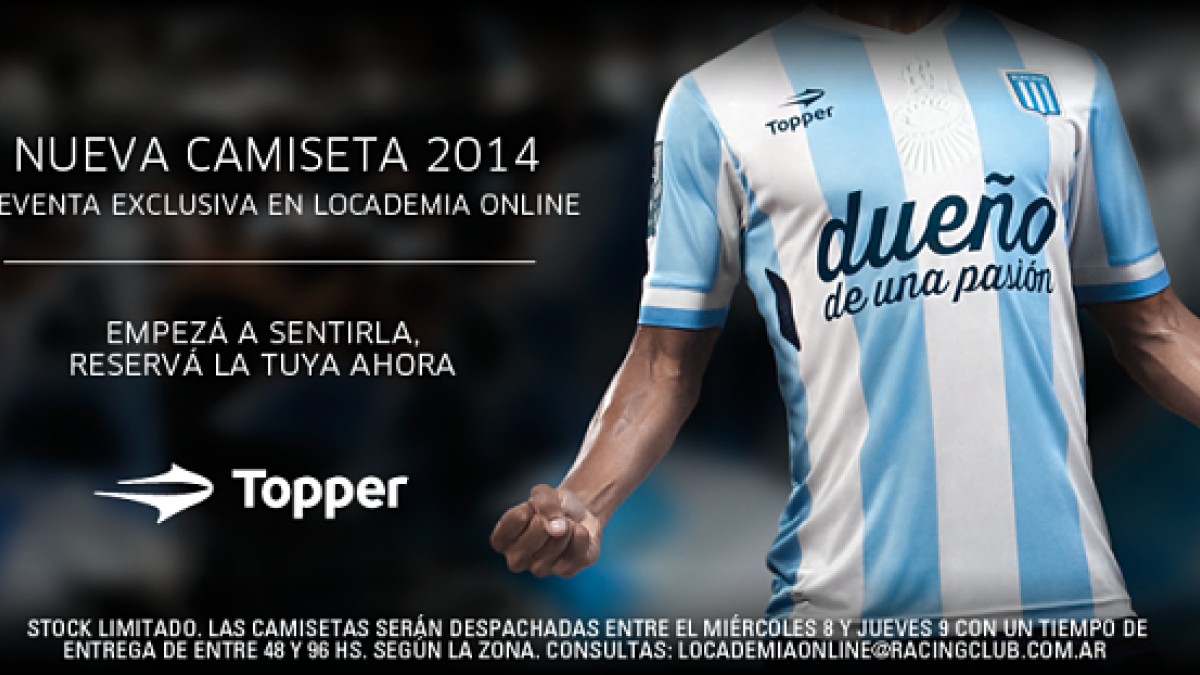 Topper firmó un contrato con Racing, por los próximos 3 años. Los hinchas académicos tienen un gran recuerdo de esta marca, dado que en su último título la camiseta también era Topper. Asi mismo, el 2014 también es especial para los sponsors y Racing, dado que Banco Hipotecario se transformará en el auspiciante con más años en la camiseta de Racing, cumpliendo 5 años en la misma. Ir a la versión original de la nota »