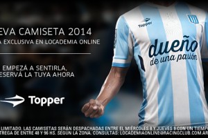 A través de su sitio web, Racing Club, presento sus nuevas camisetas para la temporada que esta por comenzar. La principal novedad es el cambio de sponsor, que a partir de ahora será Topper.