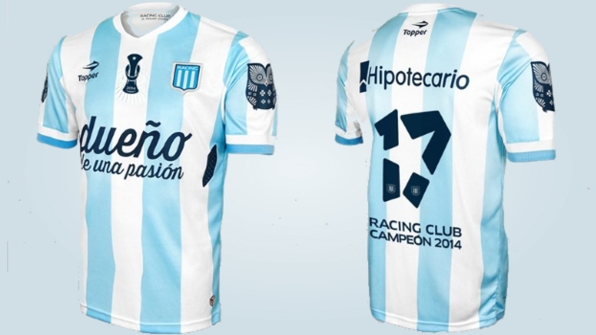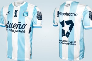 La misma cuenta en el pecho con el emblema del torneo y en la espalda con el número 17 (la cantidad de títulos de Racing) y la frase “Racing Club – Campeón 2014”.
