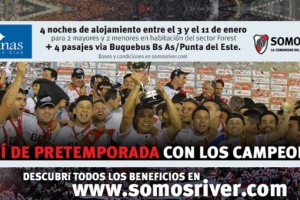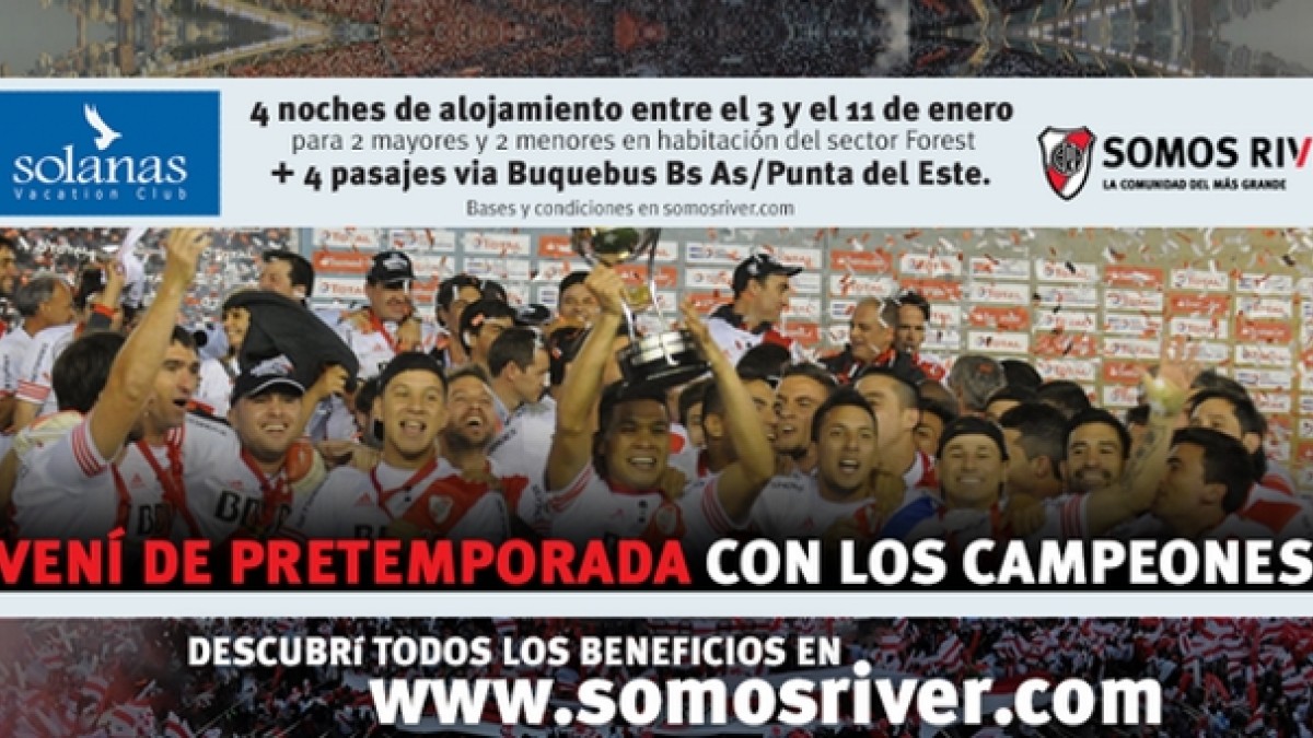Somos River te da la posibilidad de irte de pretemporada con los jugadores. Podés participar por un sorteo en el que habrá un premio de lujo: una estadía en Solanas, exclusivamente para usar en el período del 3 al 11 de enero de 2015.