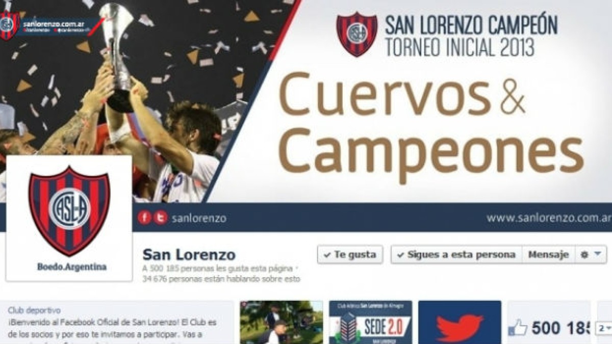 En octubre de 2012 San Lorenzo contaba con 11.000 seguidores tanto en Facebook como en Twitter y al día de hoy (situándose por detrás de Boca y River pero por encima del resto de los equipos del fútbol argentino) se ubica 3° en ambas Redes Sociales. Sí, con más de 510.000 fans en Facebook y alrededor de 87.500 seguidores en Twitter, El Ciclón se encuentra 3° en ambas Redes Sociales. Un crecimiento del 2715% en 15 meses.