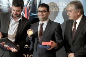 Matías Lammens, presidente Azulgrana, estuvo junto a Mariano Recalde, titular de Aerolíneas Argentinas, y Fouad Yazourth, embajador de Marruecos, en el acto celebrado en la embajada de dicho país.