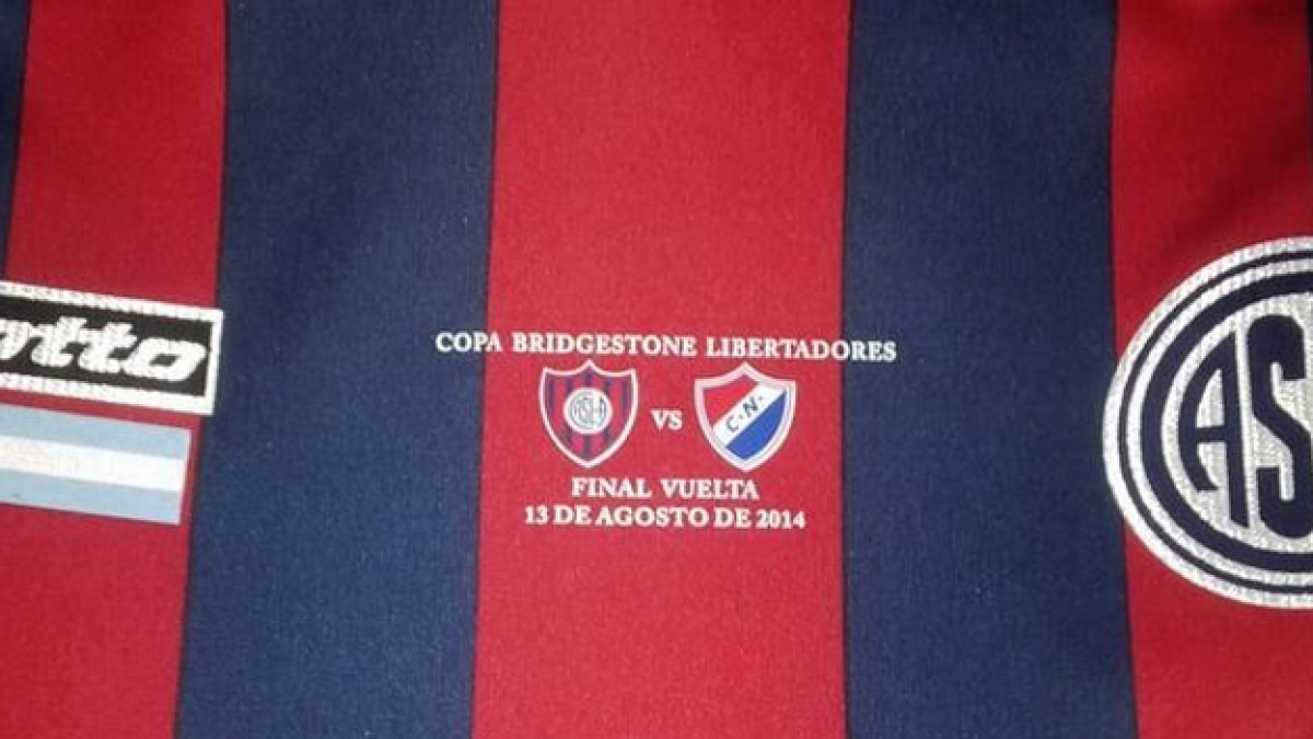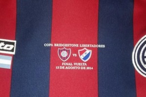 A través de su cuenta oficial de Twitter, el club del Papa Francisco presentó el detalle especial con el que contará la camiseta Azulgrana para este encuentro. Las inscripciones “Copa Bridgestone Libertadores 2014”, “Final Vuelta”, “13 de agosto de 2014”, acompañan a los escudos del Cuervo y del equipo paraguayo.