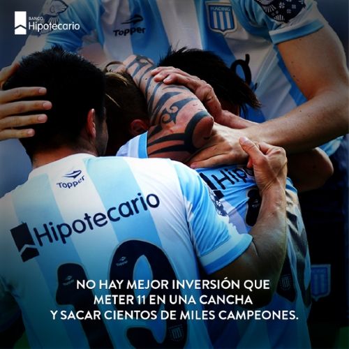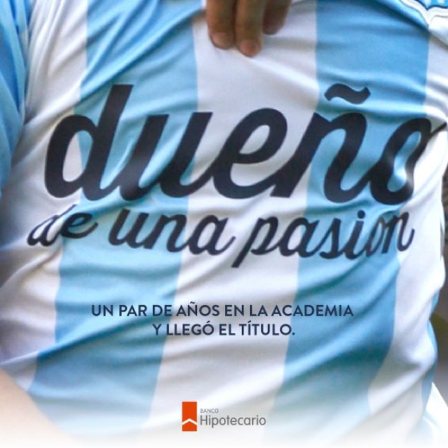 Mientras que Banco Hipotecario, presente en la camiseta celeste y blanca con la frase “Dueño de una pasión” eligió dos frases: “No hay mejor inversión que meter 11 en una cancha y sacar cientos de miles de campeones” y “Un par de años en la Academia y llegó el título”.