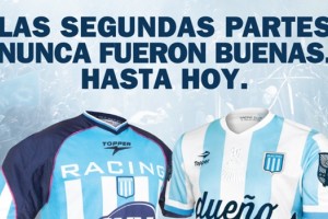 Topper tiene el detalle histórico de haber salido campeón con Racing en sus últimos dos títulos. En aquel Apertura 2001, tras 35 años de sequía, y en este Torneo de Transición 2014. “Las segundas partes nunca fueron buenas. Hasta hoy. Otra vez juntos, otra vez campeones” festejó la marca.Topper, patrocinador técnico, y Banco Hipotecario, main sponsor, enseguida subieron a sus respectivas cuentas de Twitter sumándose a los festejos del pueblo Académico.
