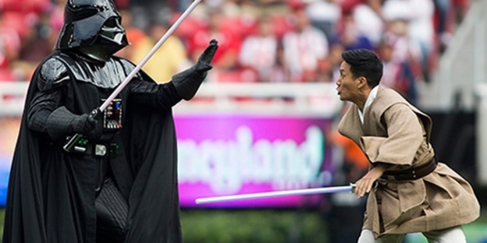 Por un momento, el Estadio Jalisco de las Chivas de Guadalajara se convirtió en una verdadera lucha Jedi. Sin George Lucas ni las estrellas de la saga, el grupo 501st Legion montó un show en el entretiempo de Chivas – Querétaro, con la representación de una escena de Star Wars.