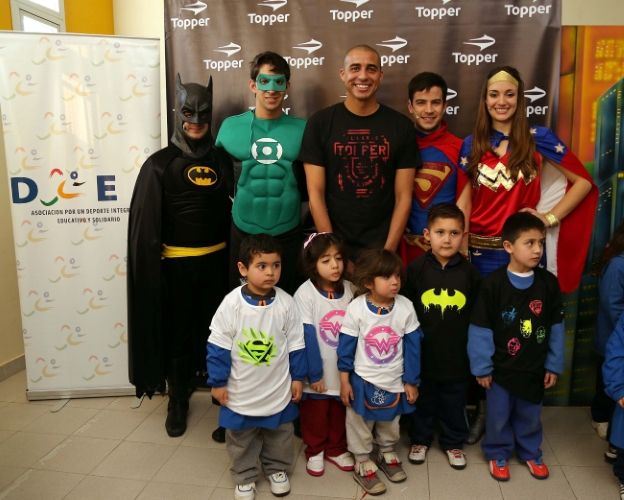 Topper participó junto a David Trezeguet de una tarde solidaria en el jardín Conejín apadrinado por su Asociación Dies en Florida Oeste. Durante la jornada estuvieron presentes los superhéroes de DC protagonistas de la nueva línea de calzado e indumentaria. Superman, La Mujer Maravilla, Linterna Verde y Batman realizaron un show donde invitaron a los pequeños a sentirse "héroes por un día" y compartieron una merienda con los chicos.