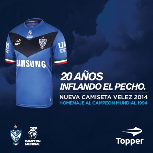 Topper presentó la nueva camiseta de Vélez Sarsfield que conmemora el 20º aniversario del campeonato del mundo obtenido en 1994.