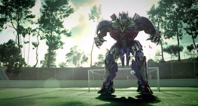 El portal SoccerBible reveló un divertido comercial en donde el mismísimo Optimus Prime, de la saga Transformers, interrumpe un partido de fútbol para promocionar la nueva película Transformers: Age of extinction. En el video aparecen Diego Poyet, hijo del entrenador uruguayo Gustavo Poyet y jugador del Charlton Athletic, y Gor Grigoryan.