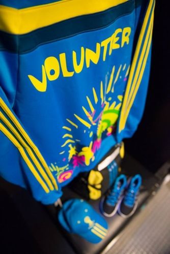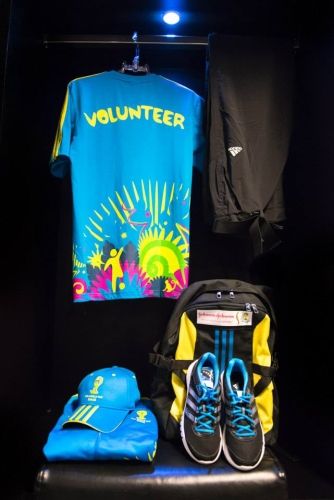 Adidas presentó en Río de Janeiro la línea completa de uniforme y accesorios que los más de 1.500 voluntarios de Brasil 2014 vestirán durante el mes que dure la competencia. Una remera manga corta, una campera, un pantalón, una gorra, un par de zapatillas y una mochila componen el kit que recibirán estos chicos y chicas de 130 países.