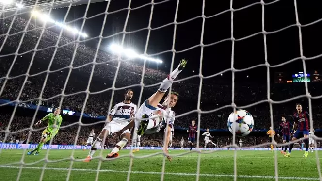 El FC Barcelona alcanzó su 8ª final de Champions tras imponerse al Bayern de Múnich en semifinales. Los azulgrana decidieron prácticamente la eliminatoria en la ida (3-0 en el Camp Nou) con una exhibición de Messi. Esta imagen muestra cómo el argentino desmanteló por sí solo toda la zaga alemana en el segundo tanto. Mientras él celebraba el gol (fuera de plano), los defensas y el arquero trataban de comprender qué había pasado.