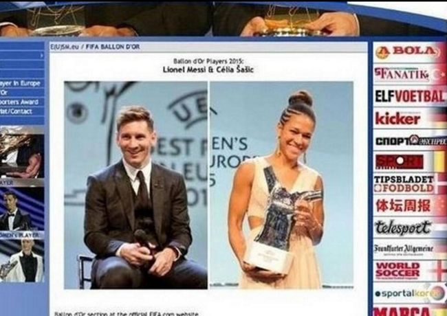 La web de European Sports Media (ESM) publicó “por error” que Lionel Messi y la alemana Celia Salic serán los ganadores del Balón de Oro 2015, a entregarse a comienzos de enero del año próximo.