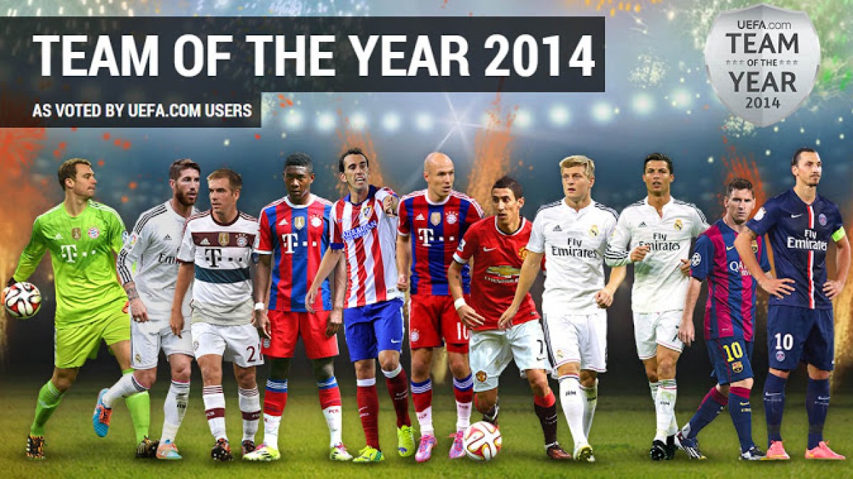 Tras conocerse a los once jugadores elegidos por la UEFA como el "Equipo UEFA del Año - 2014", el portal Footy Headlines realizó un relevamiento de los botines de cada uno de estos jugadores. Así, se supo que adidas domina ampliamente en el equipo con 7 jugadores, Nike tiene 2 y Puma 1. Adidas ganaría un nombre extra si se suma a Zlatan Ibrahimovic, quien ya sin el patrocinio de Nike, decidió utilizar unas adizero F50 pintadas totalmente de negro.