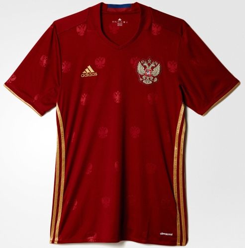 Más lanzamientos de cara a la EURO 2016. Ahora se conoció oficialmente la camiseta adidas para la Selección de Rusia, la cual combina el tradicional bordó con las tres tiras en los laterales, de color dorado, y el escudo de la Federación de Fútbol de Rusia grabado por toda la camiseta.