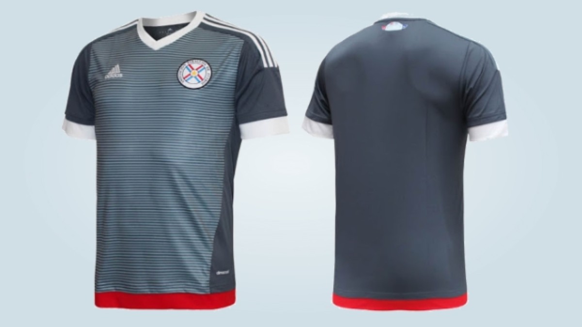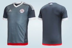 Con un diseño innovador, adidas presentó oficialmente la camiseta suplente de la Selección de Paraguay para la Copa América 2015. En el frente, se combina el azul marino predominante con unas finas rayas horizontales de color gris. La espalda, es completamente azul. Detalles blancos en cuello y mangas completan el diseño con una franja roja en la parte inferior.