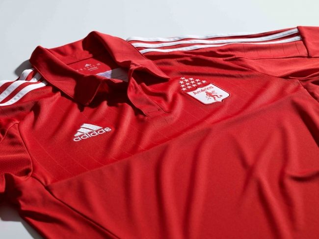El tradicional rojo escarlata del equipo caleño está presente en la camiseta, acompañado de algunos detalles en blanco bajo las mangas y en las tres tiras de adidas. Además, en la parte trasera bajo el cuello se podrá leer la frase “La pasión del pueblo”.