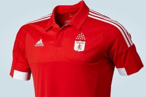 El tradicional rojo escarlata del equipo caleño está presente en la camiseta, acompañado de algunos detalles en blanco bajo las mangas y en las tres tiras de adidas. Además, en la parte trasera bajo el cuello se podrá leer la frase “La pasión del pueblo”.