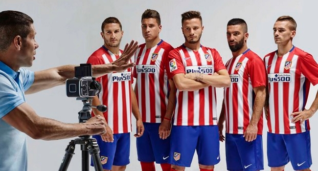 La espalda de la camiseta será la gran novedad de la elástica 2015-16, ya que, por primera vez en la historia del club, es totalmente roja. Además presenta unas franjas azules que recorren los laterales hasta unirse con las franjas azules tonales de los clásicos pantalones azules del Atlético de Madrid.