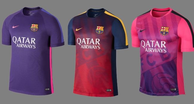 Este 2015, el FC Barcelona tiene nueva indumentaria para sus entrenamientos y la entrada en calor previa a cada partido. Nike presentó tres camisetas que serán utilizadas por los jugadores Culés en La Liga, la Copa del Rey y la UEFA Champions League.