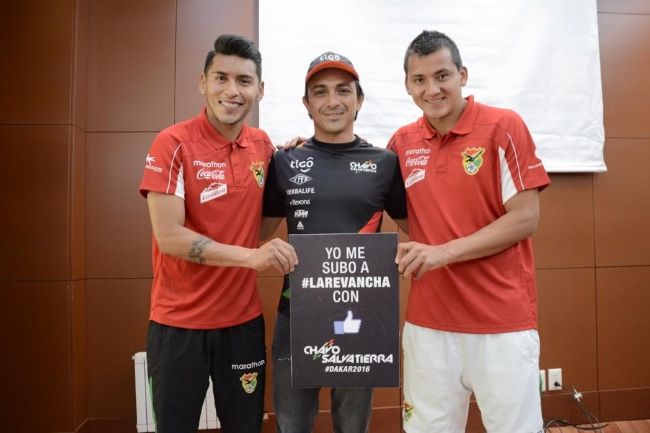 Al final del encuentro, Chavo y Baldivieso intercambiaron camisetas. Salvatierra se puso la verde y Baldivieso y sus dirigidos se sumaron a #LAREVANCHA rumbo al #DAKAR2016